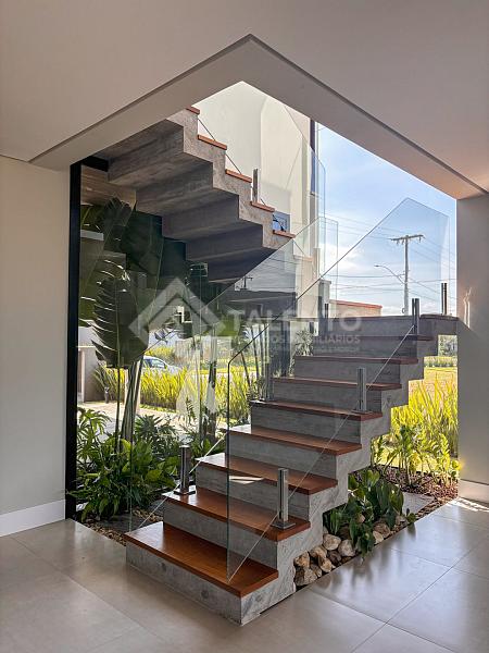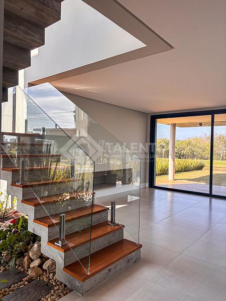 Excelente oportunidade para adquirir uma linda e de alto padrão no renomado Condomínio Reserva das Águas. A residência tem área privativa de 368,36 m², terreno frente e fundos lago, churrasqueira e lareira, áreas de lazer integradas, lavanderia ampla, garagem para 2 carros com espera para carregador de carro elétrico, terraço jardim (rooftop) para contemplação dos lagos (frente e fundos).